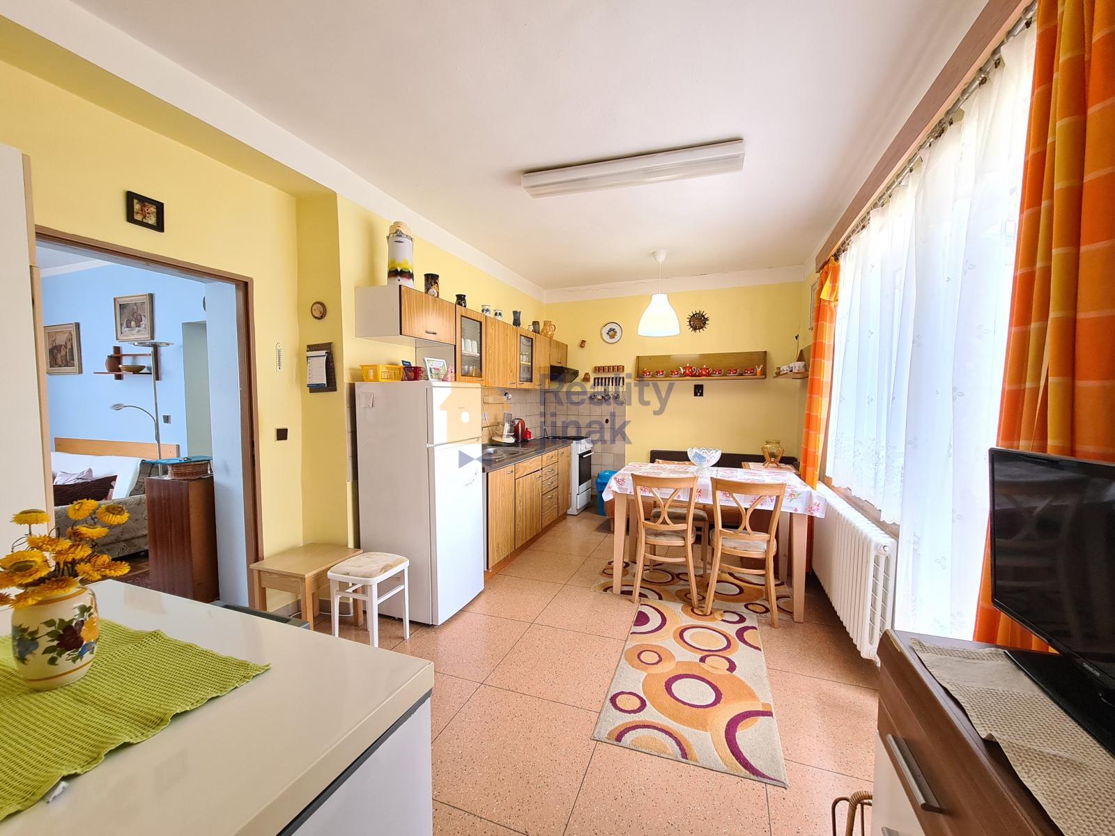 V domě se nachází tři pokoje, kuchyně, koupelna a záchod. Čtvrtý, samostatný pokoj, je umístěn v mezipatře a patří k němu vlastní koupelna se záchodem a sprchovým koutem, dokonce i vlastní vchodové dveře do domu. Skvěle tak poslouží jako oddělená jednotka pro starší rodiče, odrůstajícího potomka bažícího po soukromí nebo jako pracovna či trucovna. Z kuchyně lze vyjít na zastřešenou terasu, pod kterou se nachází sklep. K dispozici je také kvelbený sklípek, který se nachází pod domem. Je zachovalý, nepoškozený, ideální na archivní vína či uskladňování potravin. Jeho světlá výška není pro pohodlné stání při např. koštu, ale je možné jej ještě částečně zapustit do země. K dispozici je také studna, která je napojená na dům, takže lze využít vodu vlastní, i z řádu. Dům má průjezd, který dobře slouží jako zastřešené parkovací stání, případně lze parkovat přímo před domem.